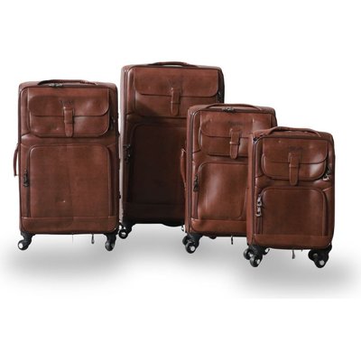 Roller Luggage Trolley Bag - Dark Brown (4 Piece) (Clip) (PU Leather) - Only Available to deliver to Major Cities