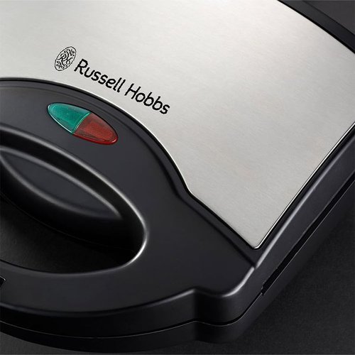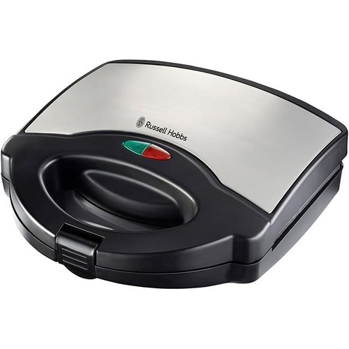 Enjoy perfectly toasted sandwiches every time with the Russell Hobbs 2 Slice Sandwich Maker (750W) a stylish and practical addition to any kitchen. Featuring a sleek stainless steel and black finish, this sandwich maker not only looks great but is built for convenience. It opens to 180°, giving you easy access for placing and removing sandwiches, while the non-stick cooking plates make cleanup quick and effortless. The power on and ‘ready to cook’ indicator lights let you know exactly when the plates have reached the ideal temperature, thanks to thermostatically controlled elements for consistent results. With cool-touch handles for added safety and powerful 750W elements, it heats up fast and delivers perfectly golden sandwiches in minutes.