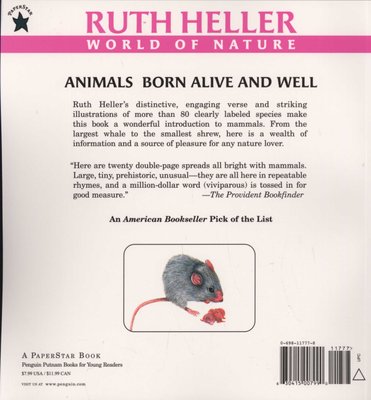 From the largest whale to the smallest shrew, Animals Born Alive and Well offers a wealth of information on mammals, and a source of pleasure for any nature lover with a new eye-catching cover!