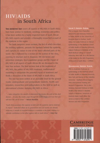 This definitive textbook covers all aspects of HIV/AIDS in southern Africa, from basic science to medicine, sociology, economics and politics. It has been written by a highly-respected team of southern African HIV experts and provides a thoroughly researched account of the epidemic in the region. The book comprises eight sections, the first of which covers the numbers behind the epidemic, both as evolution and in their current state. This is followed by sections on the science of the virus, including its structure, diagnosis and spread. HIV risk factors and prevention strategies, focal population groups and the impact of AIDS in all aspects of South African life are discussed in the following four sections. The final sections examine the treatment of HIV and AIDS, the politics of AIDS, mathematical modelling and a discussion on the future of AIDS in South Africa.