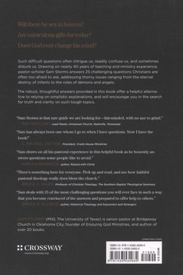 Such difficult questions often intrigue us, readily confuse us, and sometimes disturb us. Drawing on nearly 40 years of teaching and ministry experience, pastor-scholar Sam Storms answers 25 challenging questions Christians are often too afraid to ask, addressing thorny issues ranging from the eternal destiny of infants to the roles of demons and angels.
