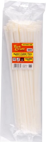 The Nylon Cable Ties 7.6mm x 400mm White (100 pcs) are versatile and durable fasteners designed to bundle and organize cables, wires, and other materials. Made from high-quality nylon, these cable ties are strong, flexible, and resistant to wear and stress. The 7.6mm width and 400mm length make them ideal for larger or thicker cables, offering a secure hold. The white color gives a clean, professional appearance, making them suitable for a variety of applications, including electrical work, home improvement, or office organization. The pack includes 100 ties, providing ample supply for multiple projects.
