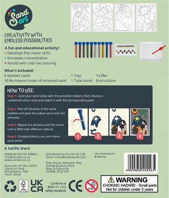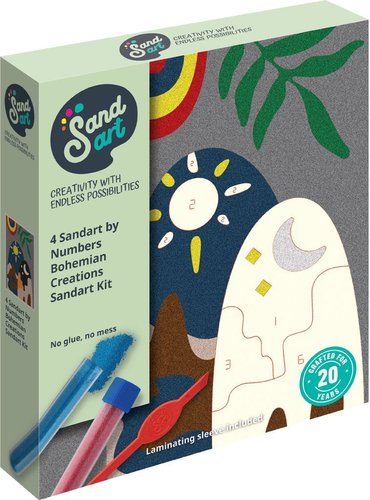 Step into a world of colour, magic, and creativity with the Sand Art by Numbers: Bohemian creations kit – a hands-on craft activity that brings fairytale scenes to life! This enchanting set is designed for children aged 4 and up and includes adhesive art boards featuring magical forest creatures like fairies, unicorns, and woodland animals. Each section is numbered, making it easy for kids to match colours and create their own vibrant masterpiece using the included coloured sand. It’s a fun, mess-free experience with no glue or scissors required – just peel, pour, and enjoy. Perfect for gifts, party packs, school projects, or quiet creative time at home, this magical kit encourages fine motor skills, colour and number recognition, and hours of imaginative fun.