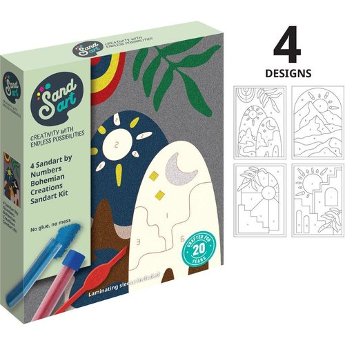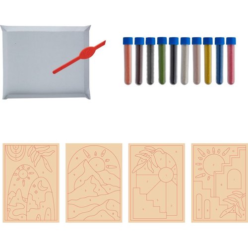 - Pack includes: 4 Pre-Cut Adhesive Design, 10 numbered tubes color sand, 1 lifter, 1 tray, 1 tube stand, instructions