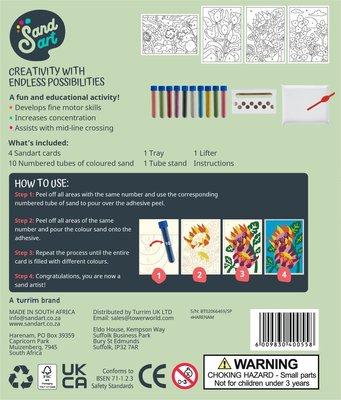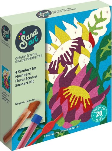 Step into a world of colour, magic, and creativity with the Sand Art by Numbers: Floral scenes kit – a hands-on craft activity that brings fairytale scenes to life! This enchanting set is designed for children aged 4 and up and includes adhesive art boards featuring magical forest creatures like fairies, unicorns, and woodland animals. Each section is numbered, making it easy for kids to match colours and create their own vibrant masterpiece using the included coloured sand. It’s a fun, mess-free experience with no glue or scissors required – just peel, pour, and enjoy. Perfect for gifts, party packs, school projects, or quiet creative time at home, this magical kit encourages fine motor skills, colour and number recognition, and hours of imaginative fun.