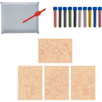 - Pack includes: 4 Pre-Cut Adhesive Design, 10 numbered tubes color sand, 1 lifter, 1 tray, 1 tube stand, instructions