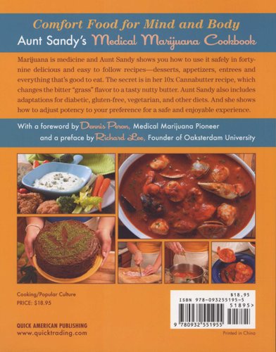 Everyone knows about pot brownies, but not many know how to make them -- and brownies are so old-school. Aunt Sandy has perfected more than 30 cannabis-infused recipes using her family's favorite appetizers, entrees, and desserts. The secret to success is a process that changes the grass taste to a delicious nutty-flavored butter that Aunt Sandy calls 10X Cannabutter. It can be used to make recipes as diverse as lemon bars and roast turkey. Aunt Sandy shows readers how to customize the strength of the recipes to adjust the potency to their own needs. This is the first cannabis cookbook to consider health and special dietary needs for patients with diabetes and low carb requirements, as well as vegans.