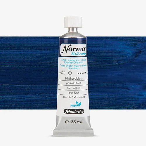 Schmincke Norma Blue Water-mixable Oils are a professional range of water-mixable oils that offer the same quality and texture as traditional oil paint but without the need for solvents. Developed in line with the high standards of Norma traditional oils, they have a rich, buttery consistency and are highly pigmented with a lightfast rating of 4 to 5 across the range.