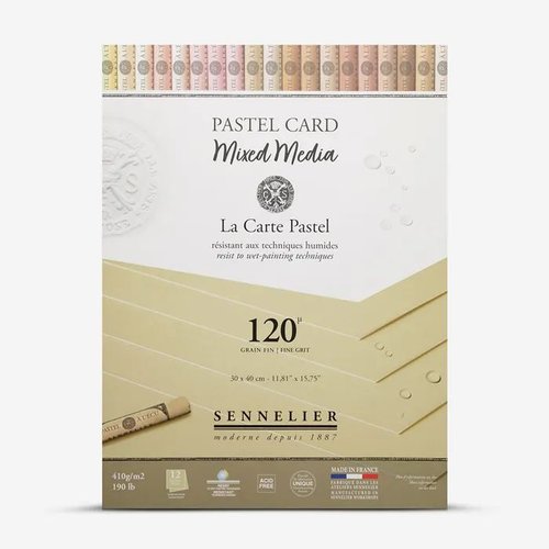 Sennelier Pastel Card Mixed Media Pad contains 12 sheets of heavyweight paper with a slightly granulated, sand-like texture. This 410gsm paper is perfect for all dry drawing techniques as well as mixed media and it is water and solvent-resistant. The textured surface allows for painting without fixative.