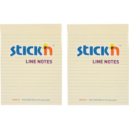Stick'n Adhesive Sticky Notes, Lined in Pastel Yellow, 203mm x 150mm, facilitate organized note-taking. Each pad contains 50 sheets, and the pack includes 2 pads, making them ideal for home, school, or office use, ensuring your reminders are clear and concise.