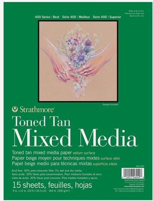 This is an 9 x 12in Strathmore 400 Series Toned Tan Mixed Media Pad