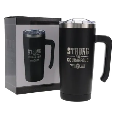 Strong and Courageous Black Stainless Steel Travel Mug with Handle is a