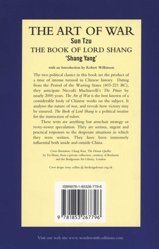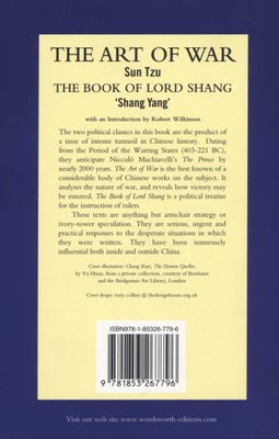 Translated by Yuan Shibing and J.J.L.Duyvendak. With introductions by Robert Wilkinson. The two political classics in this book are the product of a time of intense turmoil in Chinese history. Dating from the Period of the Warring States (403-221BC), they anticipate Machiavelli's The Prince by nearly 2000 years. The Art of War is the best known of a considerable body of Chinese works on the subject. It analyses the nature of war, and reveals how victory may be ensured. The Book of Lord Shang is a political treatise for the instruction of rulers. These texts are anything but armchair strategy or ivory-tower speculation. They are serious, urgent and practical responses to the desperate situations in which they were written. They have been immensely influential both inside and outside China.