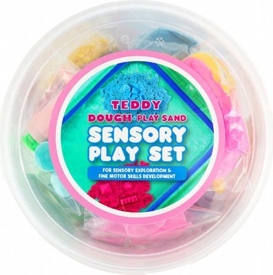 Teddy’s Sensory Sets are designed to engage little ones’ senses of touch, sight and sound. The kits include brightly coloured, and tactile sensory items like crunchy play sand (kinetic sand) that won’t dry out, and soft, squishy dough, along with tools and accessories that encourage sensory exploration and fine motor skills development - all contained within a mess-free inflatable play pool. Provides calming stimulation during playtime.