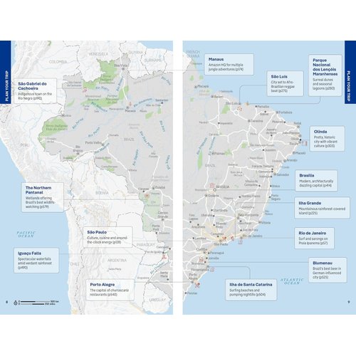 Covers: Rio de Janeiro; São Paulo; The Amazon; Rio de Janeiro State; Ceará & Maranhão; Pernambuco, Paraiba and Rio Grande do Norte; Sergipe and Alagoas; Bahia; Minas Gerais and Espírito Santo; Brasília and Goiás; São Paulo State; Paraná; Santa Catarina; Rio Grande do Sul; Mato Grosso and Mato Grosso do Sul