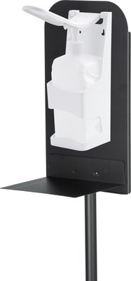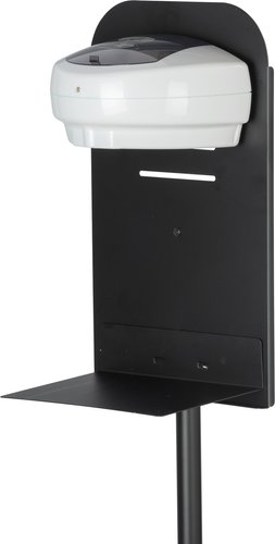 The disinfectant column is ideally suitable for all dispensers for wall mounting (e.g. the disinfectant dispenser Arco from WENKO). Because this hygiene station has a clever screwing device to position a dispenser of your choice on the stand. The disinfectant dispenser is easily mounted through the slots in the rear wall of the column. (Mounting material not included)