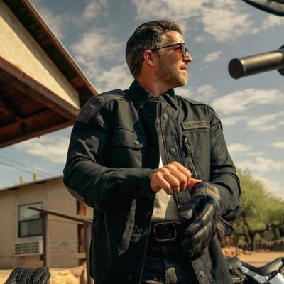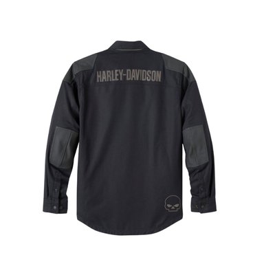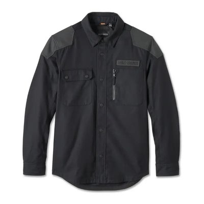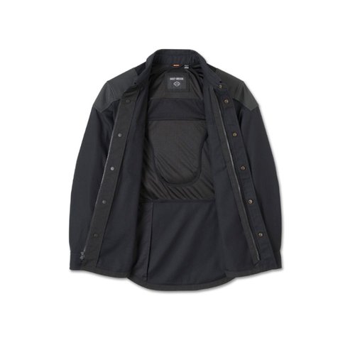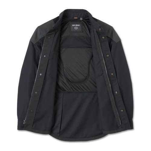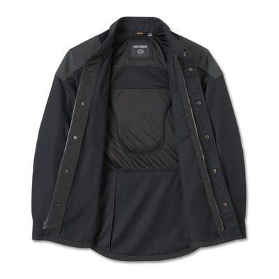 jacket. This men’s motorcycle shirt jacket also has underarm venting and