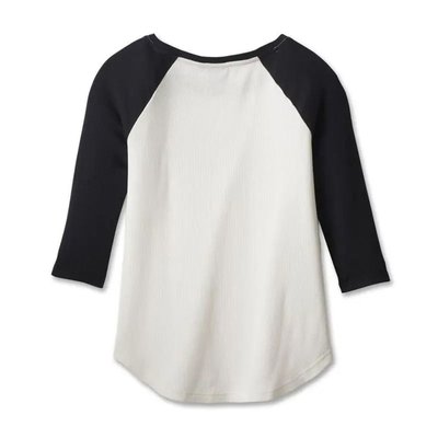 • Design Details: Contrasting scoop neckline. Contrasting 3/4 raglan sleeves.
