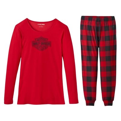 & Shield Plaid Long Sleeve Pajama Set is made from durable, soft polyester