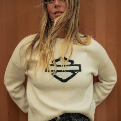 with added stretch. This women’s sweater stays clean on the back and showcases