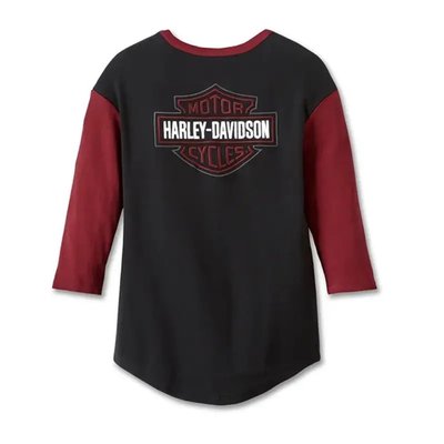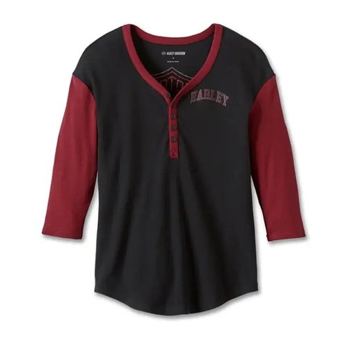 your typical Henley with features like contrasting 3/4 sleeves, a sweetheart