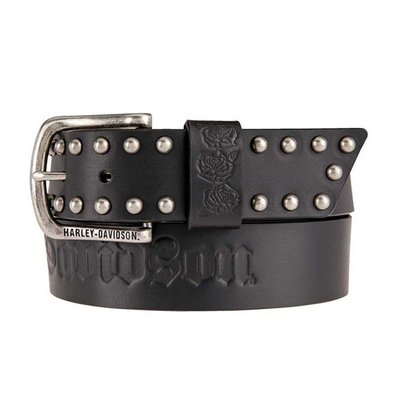Harley-Davidson® Women's Rockin' Rose Studded Leather Belt, HDWBT11200-BLK.