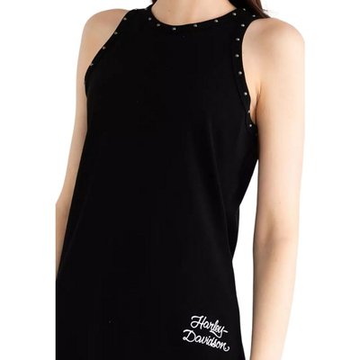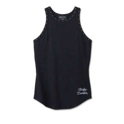 Studded, stay-cool style is what our Limited-Edition Sedona all about. Crafted from ring-spun ribbed cotton with a hit of spandex for added stretch, this women’s tank top features a bound crew neckline and flattering shirttail hem that lengthens your leg line. Finished with domed studded trim and a kiss of our embroidered branding near the hem for a lowkey H-D look. • Materials: 93% cotton, 7% spandex midweight ring-spun 2x1 rib. • Design Details: Bound crew neckline and armholes with antique silver domed studded trim. Shirttail hem. • Graphics: Direct embroidery.