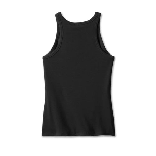 • Design Details: Racerback silhouette with high neck. Bound neckline and