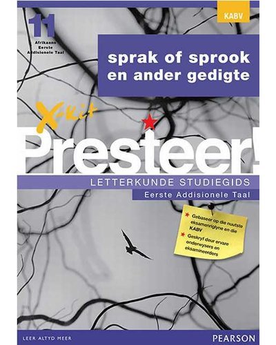 X-kit Presteer Letterkunde Studiegidse maak die nasionale voorgeskrewe romans, dramas, kortverhale en gedigte meer toeganklik vir leerders. Dit verskaf kontekstuele inligting, karakterbeskrywings, volledige ontleding van temas, asook spesifieke eksamenriglyne.